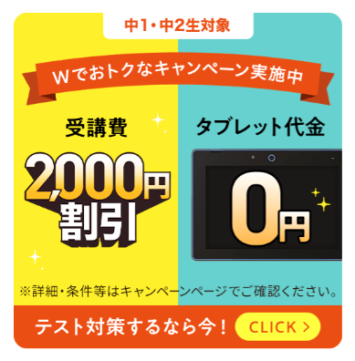 現在、進研ゼミ中学講座では、期間限定のキャンペーンがおこなわれており、入会するのにかなりお得なタイミングになっています。